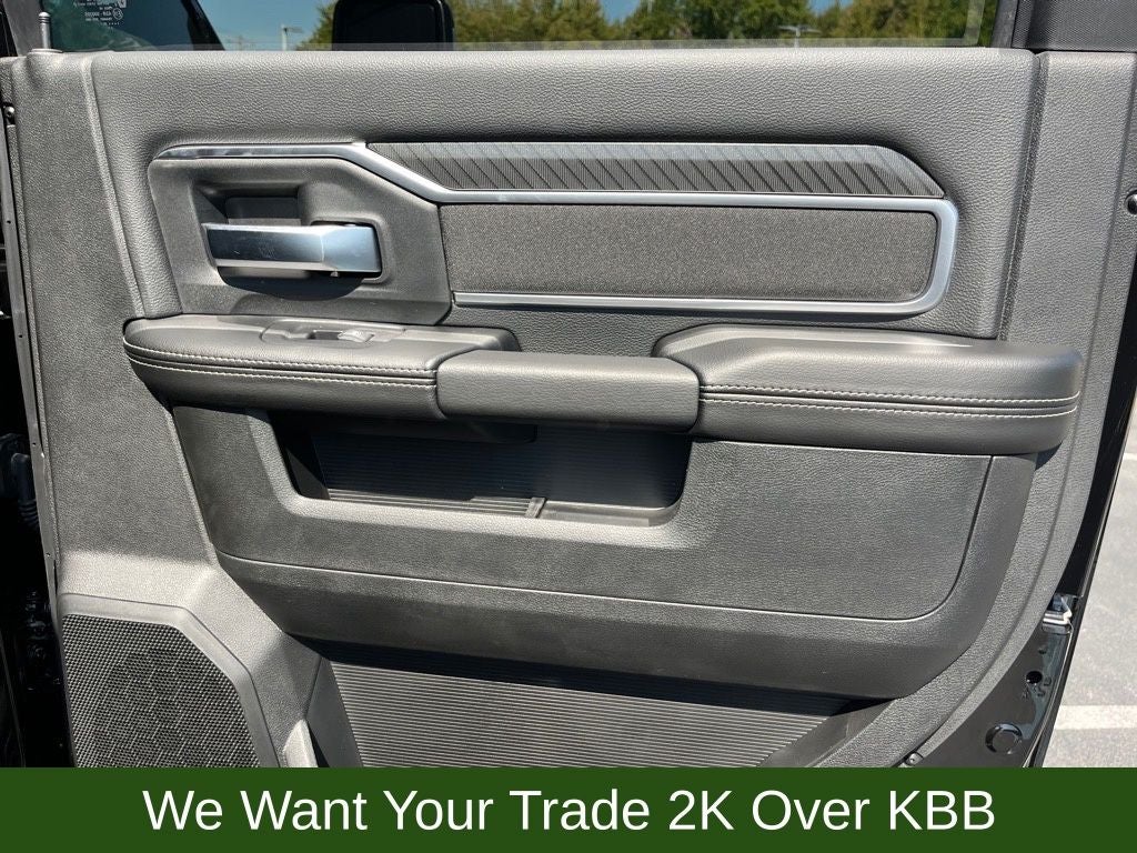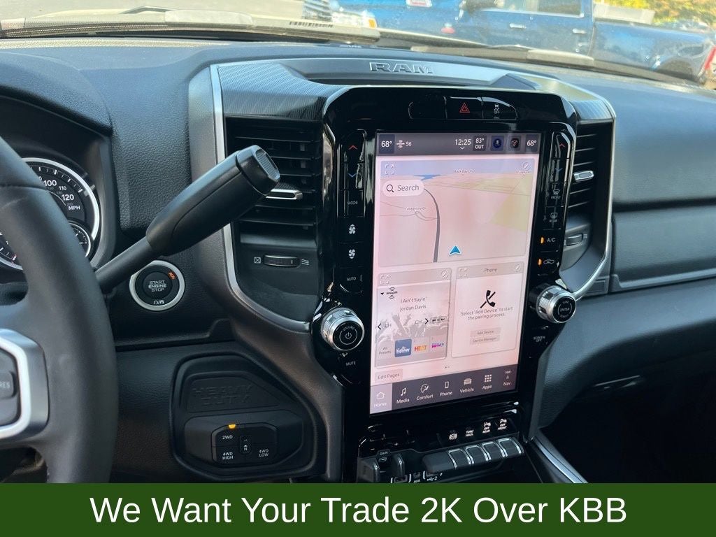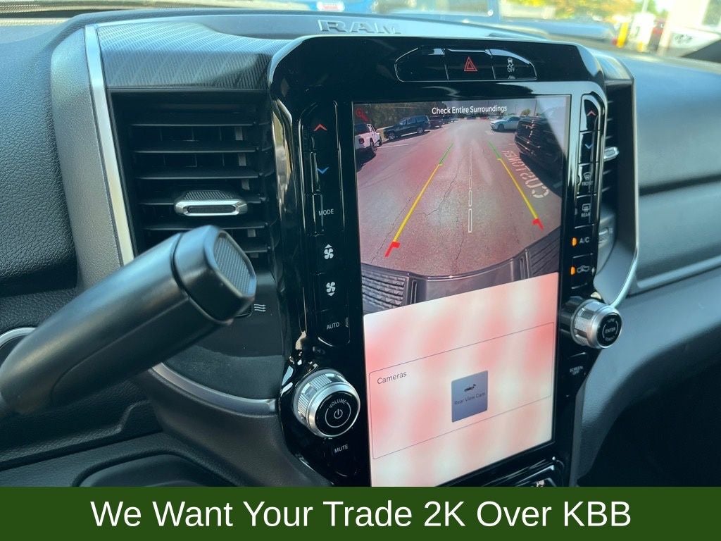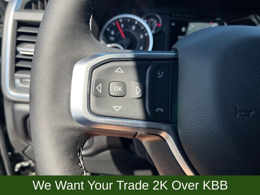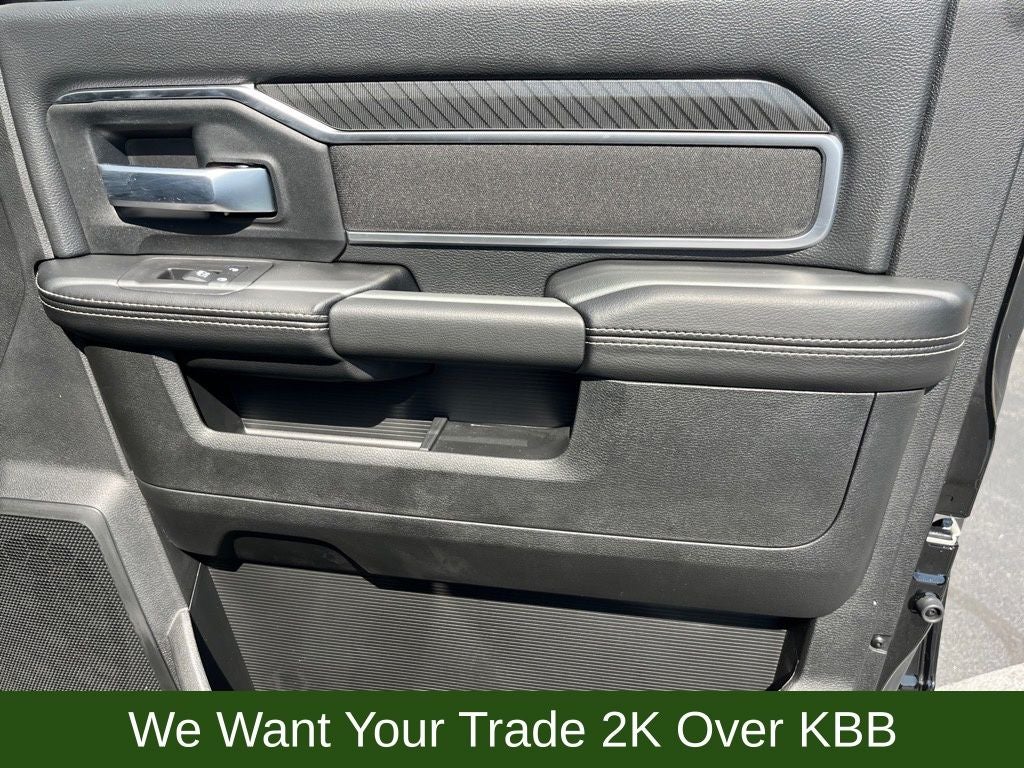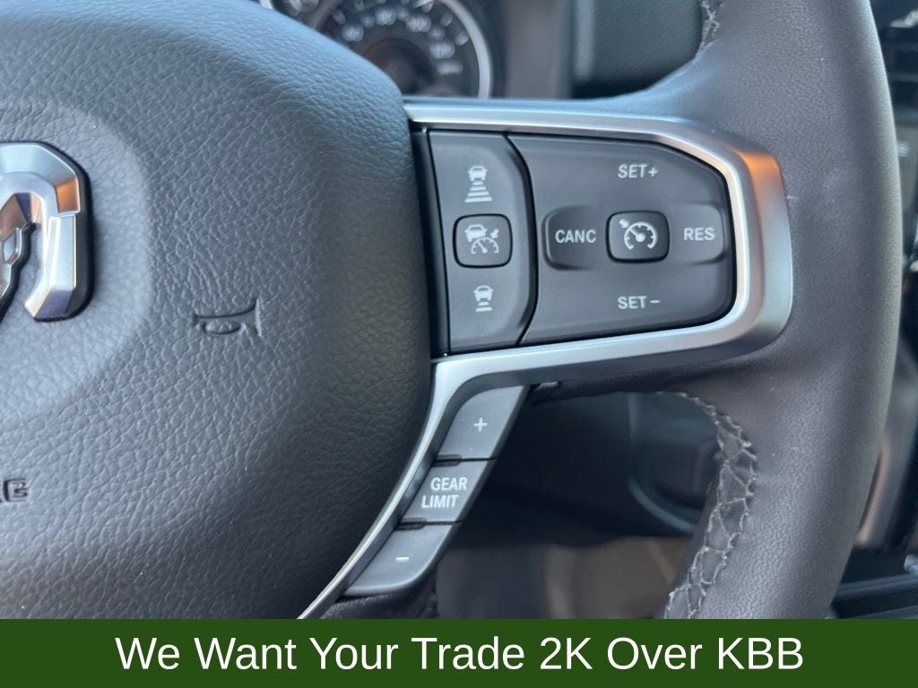 12 Touchscreen Display, 2 Way Rear Headrest Seat, 2nd Row In Floor Storage Bins, 4 Way Front Headrests, 4-Wheel Disc Brakes, 40/20/40 Split Bench Seat, 4G LTE Wi-Fi Hot Spot, 6 Speakers, 9 Alpine Speakers w/Subwoofer, ABS brakes, Air Conditioning, Air Conditioning ATC w/Dual Zone Control, Alexa Built-In, Alloy wheels, AM/FM radio: SiriusXM, Anti-Spin Differential Rear Axle, Apple CarPlay, Apple CarPlay/Android Auto, Auto Power-Folding Mirrors, Auto-Dimming Rear-View Mirror, Big Horn Level 1 Plus Equipment Group, Black Exterior Mirrors, Black Exterior Truck Badging, Black Interior Accents, Black Wheel Center Hub, Body Color Grille Surround, Brake assist, Bumpers: chrome, Clearance Lamps, Cloth 40/20/40 Bench Seat, Compass, Connected Travel & Traffic Services, Connectivity - US/Canada, Delay-off headlights, Driver door bin, Dual front impact airbags, Dual front side impact airbags, Dual Glove Boxes, Electronic Stability Control, Emergency Vehicle Alert System (EVAS), Exterior Mirrors Courtesy Lamps, Exterior Mirrors w/Heating Element, Exterior Mirrors w/Supplemental Signals, Foam Bottle Insert (Door Trim Panel), Folding Flat Load Floor Storage, Footwell Courtesy Lamp, Forward & Reverse Utility Lights, Front anti-roll bar, Front Armrest w/Cupholders, Front Center Armrest w/Storage, Front Center Seat Cushion Storage, Front fog lights, Front reading lights, Front Seat Back Map Pockets, Fully automatic headlights, Global Telematics Box Module (TBM), Gloss Black Nostrils/Mic Black Grille, Glove Box Lamp, Google Android Auto, GPS Antenna Input, GPS Navigation, HD Radio, Heated door mirrors, Illuminated entry, Integrated Voice Command w/Bluetooth®, LED Bed Lighting, Locking Lower Glove Box, Low tire pressure warning, Luxury Steering Wheel, Manual Adjust 4-Way Driver Seat, Manual Adjust 4-Way Front Passenger Seat, Mirror Running Lights, MOPAR Deployable Bed Step, MOPAR Spray In Bedliner, Night Edition, Occupant sensing airbag, Off-Road Info Pages, Outside temperature display, Overhead airbag, Overhead console, Painted Front Bumper, Painted Rear Bumper, Panic alarm, ParkView Rear Back-Up Camera, Passenger door bin, Passenger vanity mirror, Power 2-Way Driver Lumbar Adjust, Power Adjust 8-Way Driver Seat, Power Adjust Mirrors, Power Adjustable Convex Aux Mirrors, Power door mirrors, Power Heated Folding Telescopic Mirrors, Power steering, Power Telescoping Mirrors, Power windows, Premium Cloth 40/20/40 Bench Seat, Quick Order Package 24Z Big Horn, Radio data system, Radio: Uconnect 5 Nav w/12.0 Display, Radio: Uconnect 5 w/8.4 Display, Rear 60/40 Folding Seat, Rear anti-roll bar, Rear Dome w/On/Off Switch Lamp, Rear Folding Seat, Rear seat center armrest, Rear step bumper, Rear window defroster, Remote keyless entry, Remote Start System, Remote USB Port - Charge Only, Security system, Selectable Tire Fill Alert, SiriusXM Radio Service, SiriusXM w/360L, Speed control, Steering Wheel Mounted Audio Controls, Storage Tray, Tachometer, Tilt steering wheel, Traction control, Trailer Tow Pages, Trip computer, Turn signal indicator mirrors, Variably intermittent wipers, Vinyl 2nd Row Seat, Voltmeter, Wheels: 18 x 8.0 Polished Aluminum, Wheels: 20 x 8.0 Black Painted Aluminum.