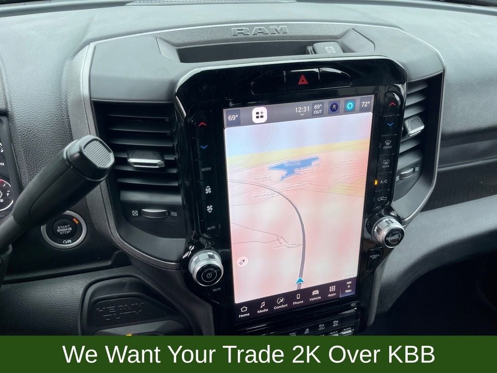 115V Auxiliary Front Power Outlet, 12 Touchscreen Display, 2 Way Rear Headrest Seat, 3.73 Axle Ratio, 4 Way Front Headrests, 4-Wheel Disc Brakes, 40/20/40 Split Bench Seat, 400W Inverter, 4G LTE Wi-Fi Hot Spot, 6 Speakers, ABS brakes, Air Conditioning, Air Conditioning ATC w/Dual Zone Control, Alexa Built-In, AM/FM radio: SiriusXM, Anti-Spin Differential Rear Axle, Apple CarPlay, Apple CarPlay/Android Auto, Auto-Dimming Rear-View Mirror, Black Exterior Mirrors, Black Wheel Center Hub, Brake assist, Carpet Floor Covering, Clearance Lamps, Cloth 40/20/40 Bench Seat, Compass, Connected Travel & Traffic Services, Connectivity - US/Canada, Dash Pass Thru Wire Circuits, Delay-off headlights, Disassociated Touchscreen Display, Driver door bin, Dual Alternators Rated At 400 Amps, Dual front impact airbags, Dual front side impact airbags, Electronic Stability Control, Emergency Vehicle Alert System (EVAS), Engine Block Heater, Exterior 115V AC Outlet, Exterior Mirrors Courtesy Lamps, Exterior Mirrors w/Heating Element, Exterior Mirrors w/Supplemental Signals, Front & Rear Floor Mats, Front anti-roll bar, Front Armrest w/Cupholders, Front Center Armrest w/Storage, Front fog lights, Front License Plate Bracket, Front reading lights, Fully automatic headlights, Global Telematics Box Module (TBM), Google Android Auto, GPS Antenna Input, GPS Navigation, HD Radio, Heavy Duty Vinyl 40/20/40 Split Bench Seat, I/P Mounted Auxiliary Switches, Illuminated entry, Integrated Voice Command w/Bluetooth®, Low tire pressure warning, Manual Adjust 4-Way Driver Seat, Manual Adjust 4-Way Front Passenger Seat, Manual Folding Exterior Mirrors, Manual Telescoping Mirrors, Manufacturer's Statement of Origin, Mirror Running Lights, Mopar Black Tubular Side Steps, Occupant sensing airbag, Off-Road Info Pages, Outside temperature display, Overhead airbag, Overhead console, Panic alarm, ParkSense Front/Rear Park Assist System, ParkView Rear Back-Up Camera, Passenger door bin, Passenger vanity mirror, Power Adjust Mirrors, Power Adjustable Convex Aux Mirrors, Power Heated Folding Telescope Mirrors, Power steering, Power windows, Quick Order Package 2UA Tradesman, Radio data system, Radio: Uconnect 5 Nav w/12.0 Display, Radio: Uconnect 5 w/8.4 Display, Rear anti-roll bar, Rear Folding Seat, Rear Power Sliding Window, Rear step bumper, Rear window defroster, Remote keyless entry, Remote USB Port - Charge Only, Selectable Tire Fill Alert, SiriusXM Radio Service, SiriusXM w/360L, Speed control, Storage Tray, Tachometer, Tilt steering wheel, Tinted Acoustic Windshield Glass, Traction control, Tradesman Level 1 Equipment Group, Trailer Tow Pages, Variably intermittent wipers, Voltmeter, Wheels: 17 x 7.5 Black Steel Styled.