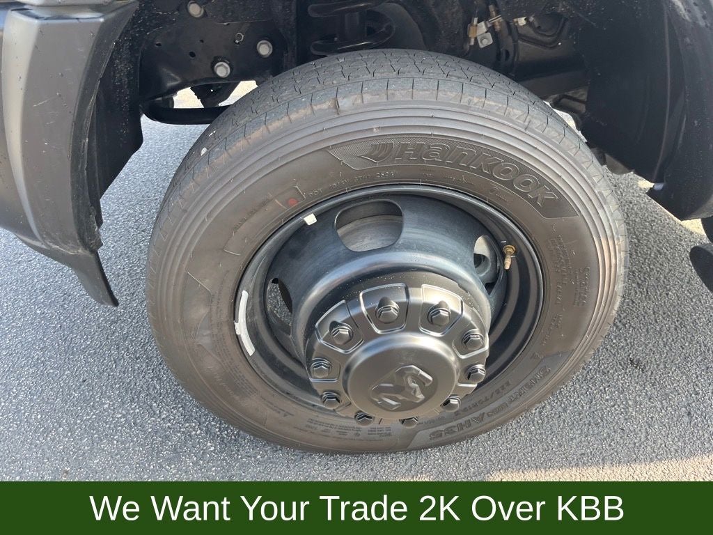 4 Speakers, 4-Wheel Disc Brakes, 4.44 Axle Ratio, 40/20/40 Split Bench Seat, 4G LTE Wi-Fi Hot Spot, ABS brakes, Air Conditioning, AM/FM radio: SiriusXM, Apple CarPlay, Apple CarPlay/Android Auto, Black Exterior Mirrors, Black Power Heated Fold Telescope Mirrors, Compass, Connectivity - US/Canada, Delay-off headlights, Driver door bin, Dual front impact airbags, Dual rear wheels, Electronic Stability Control, Emergency communication system: RAM Connect, Exterior Mirrors Courtesy Lamps, Exterior Mirrors w/Heating Element, Exterior Mirrors w/Supplemental Signals, For Details, Visit DriveUconnect.com, Front 1-Touch Down Power Windows, Front anti-roll bar, Front Armrest w/Cupholders, Front Center Armrest w/Storage, Front fog lights, Front License Plate Bracket, Front reading lights, Fully automatic headlights, Global Telematics Box Module (TBM), Google Android Auto, GPS Antenna Input, Heavy Duty Front Suspension Group, Integrated Voice Command w/Bluetooth®, Manual Adjust 4-Way Driver Seat, Manual Adjust 4-Way Front Passenger Seat, Manual Folding Exterior Mirrors, Manual Telescoping Mirrors, Mirror Running Lights, Occupant sensing airbag, Outside temperature display, Overhead console, ParkView Rear Back-Up Camera, Passenger door bin, Passenger vanity mirror, Power Adjust Mirrors, Power steering, Power Take-Off Right/Left, Power-Adjustable Convex Aux Mirrors, Quick Order Package 25A Tradesman, Radio data system, Radio: Uconnect 5 w/8.4 Display, Rear anti-roll bar, Rear Window Defroster, Remote Keyless Entry, Remote USB Port - Charge Only, Speed control, Speed Sensitive Power Locks, Tachometer, Temperature & Compass Gauge, Tilt steering wheel, Traction control, Tradesman Level 1 Equipment Group, Trailer Brake Control, Trailer Light Check, Upgraded Door Trim Panel, Variably intermittent wipers, Voltmeter, Wheels: 19.5 x 6.0 Black Painted Steel.